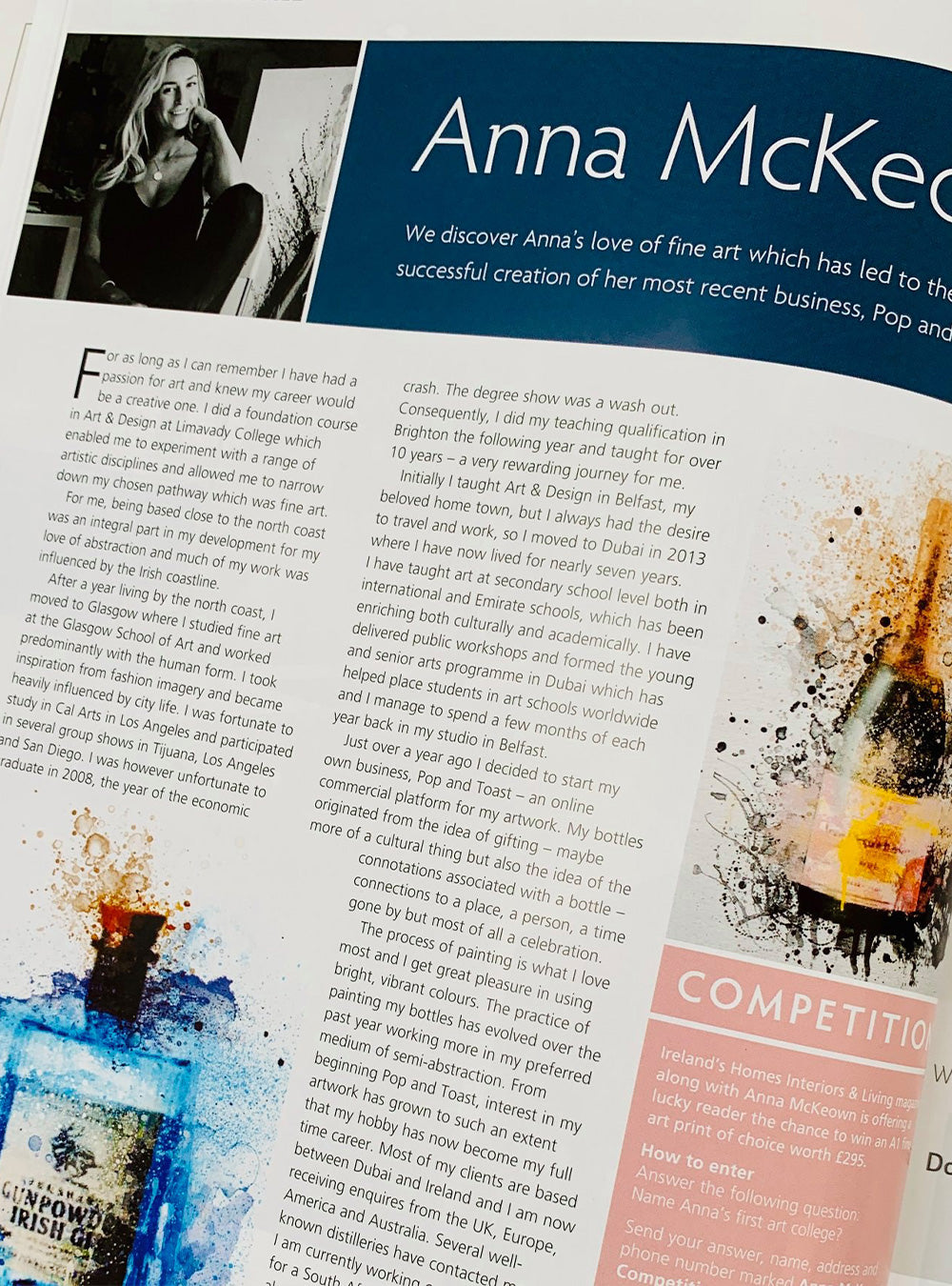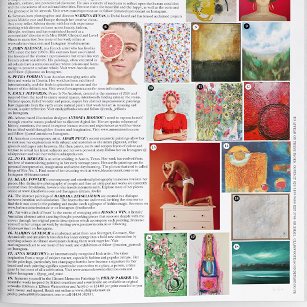 One of McKeown’s champagne paintings features in British Vogue’s Art gallery edit as part of their Feb’ issue.