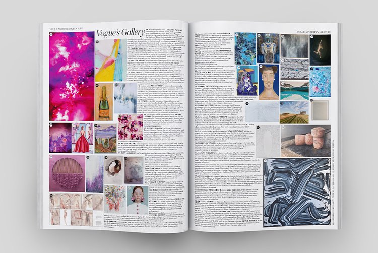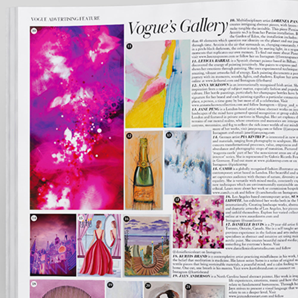 One of McKeown’s champagne paintings features in British Vogue’s Art gallery edit as part of their March’ issue.